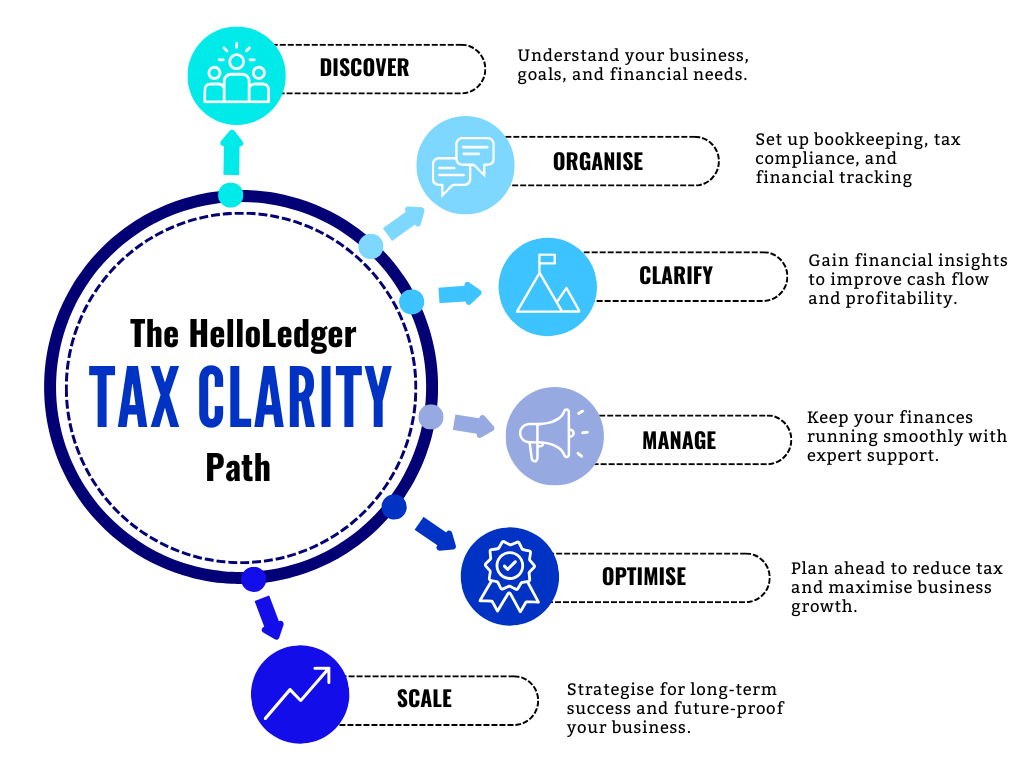 Whether tax constantly catches you off guard or you’re growing and want to stay in control, Hello Tax Clarity gives you what you need to stay ahead, with real results you can see.